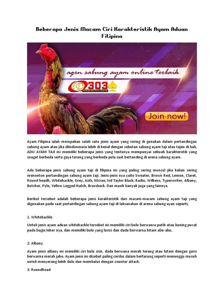 Ayam bangkok memang sudah terkenal dengan keunggulannya. Republika ng pilipinas) adalah sebuah negara republik di asia tenggara, sebelah utara indonesia, dan malaysia. Untuk itu, anda harus mencari tahu informasi dan gambar ayam bangkoklebih dahulu agar tidak tertipu atau salah memilih. Sejarah masuknya islam ke filipina kondisi filipina sebelum masuknya agama islam tidak banyak diketahui. Sabung ayam filipina adalah sabung ayam pisau yang artinya setiap ayam yang bertarung dalam arena telah dalam sabung ayam filipin ada menggunkan beberapa jenis ayam untuk bertarung.